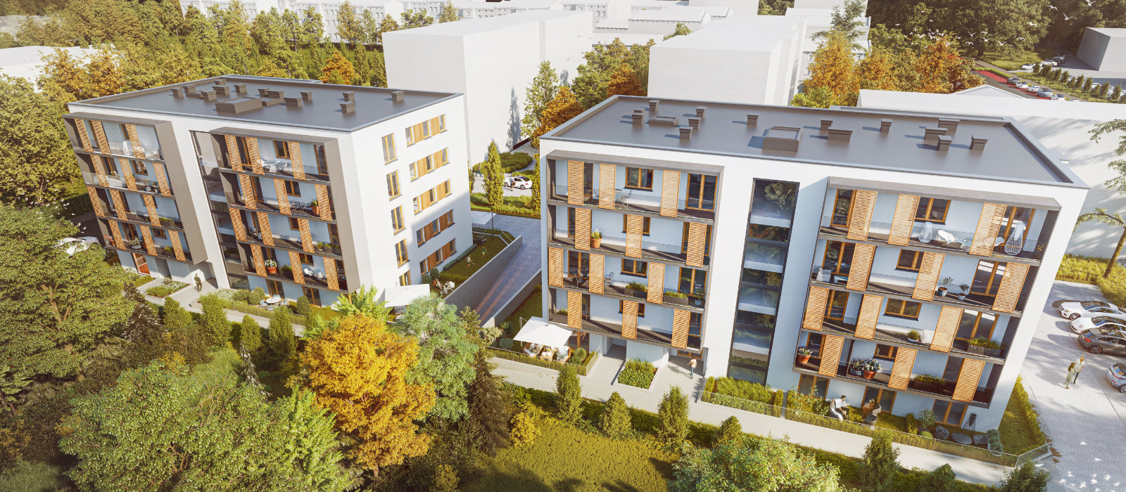 Każde z nich zostanie wyposażone w obszerny taras lub balkon. Cichobieżna winda, całodobowy monitoring, inspirujące części wspólne i aż 95 miejsc parkingowych spełnią oczekiwania nawet najbardziej wymagających mieszkańców.